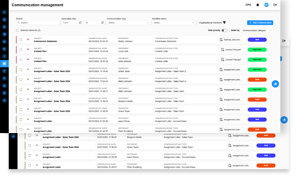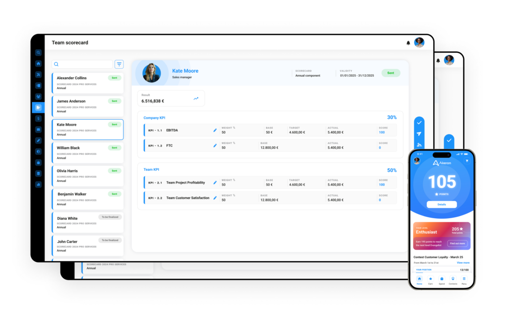 Throughout the performance cycle, continuous monitoring of target and variable compensation achievements ensures transparency and accountability. Both payees and managers have visibility into progress against KPIs and scoring models, enabling timely interventions and improved alignment to targets.
